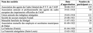 Tableau 22 : Les sociétés de secours mutuels autorisées au Sénégal au 27 août 1923